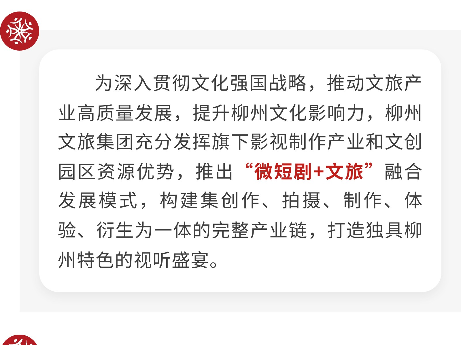 柳州文旅集團(tuán)探索“微短劇+文旅”融合發(fā)展新模式 發(fā)布時(shí)間:2025年07月02日 10時(shí)來(lái)源:本站原創(chuàng)瀏覽:170 人次