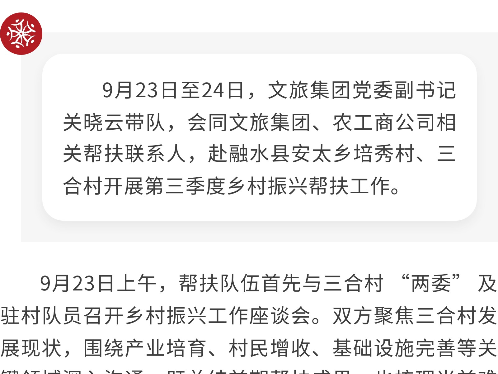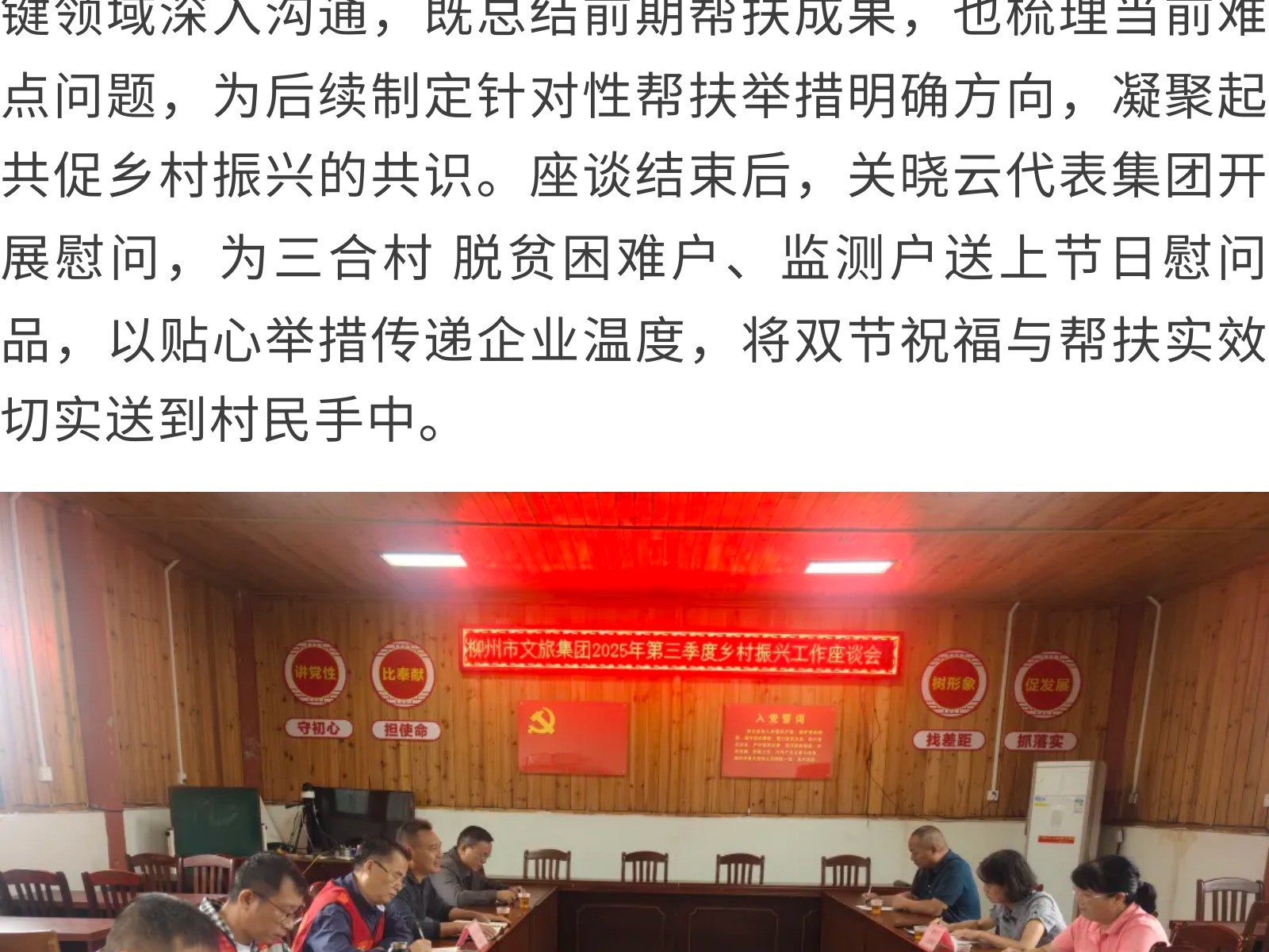 文旅集團(tuán)開(kāi)展2025年第三季度鄉(xiāng)村振興幫扶活動(dòng) 發(fā)布時(shí)間:2025年09月30日 16時(shí)來(lái)源:本站原創(chuàng)瀏覽:119 人次