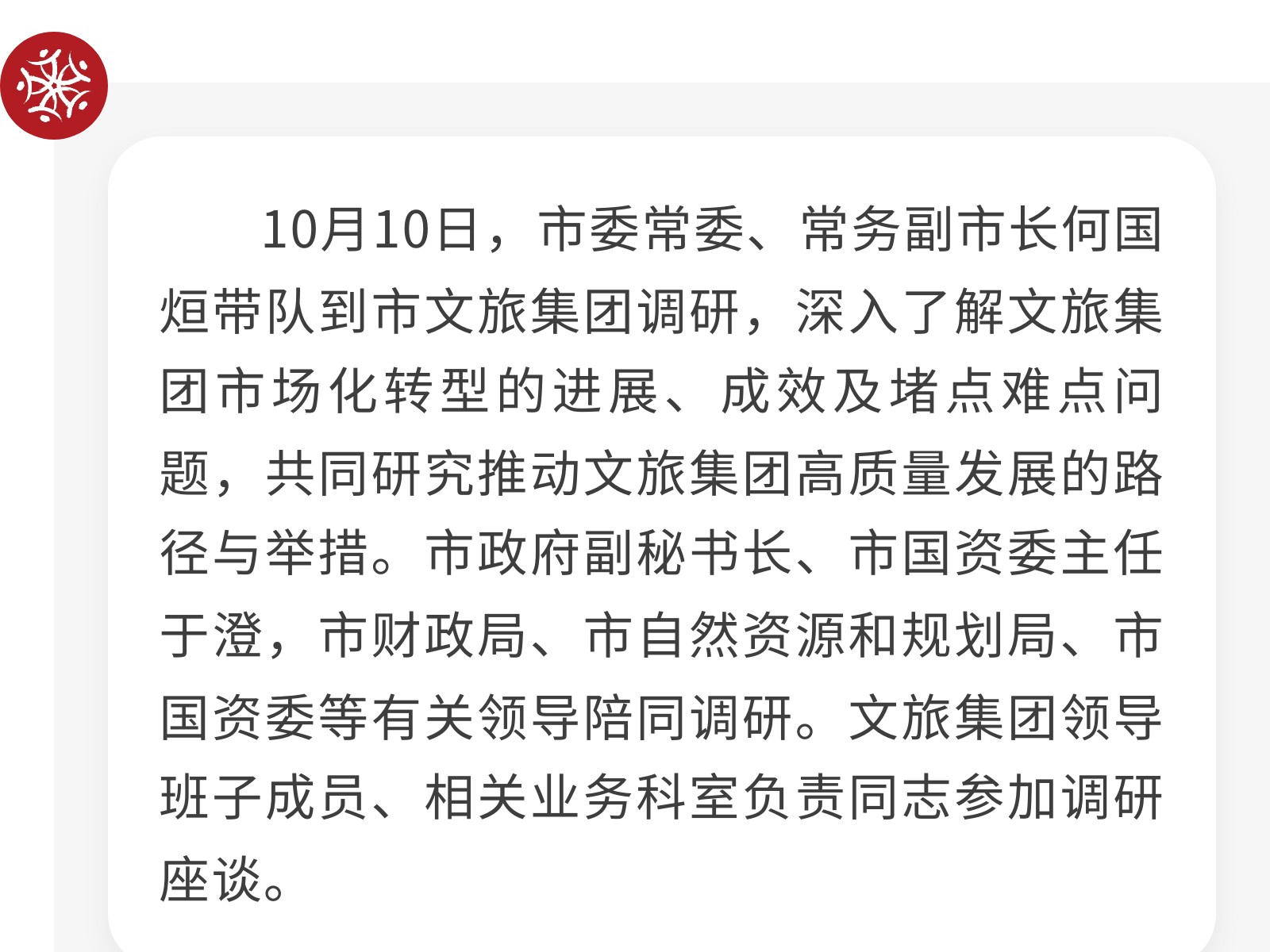 市委常委、常務副市長何國烜到市文旅集團調(diào)研 發(fā)布時間:2025年10月11日 15時來源:本站原創(chuàng)瀏覽:79 人次