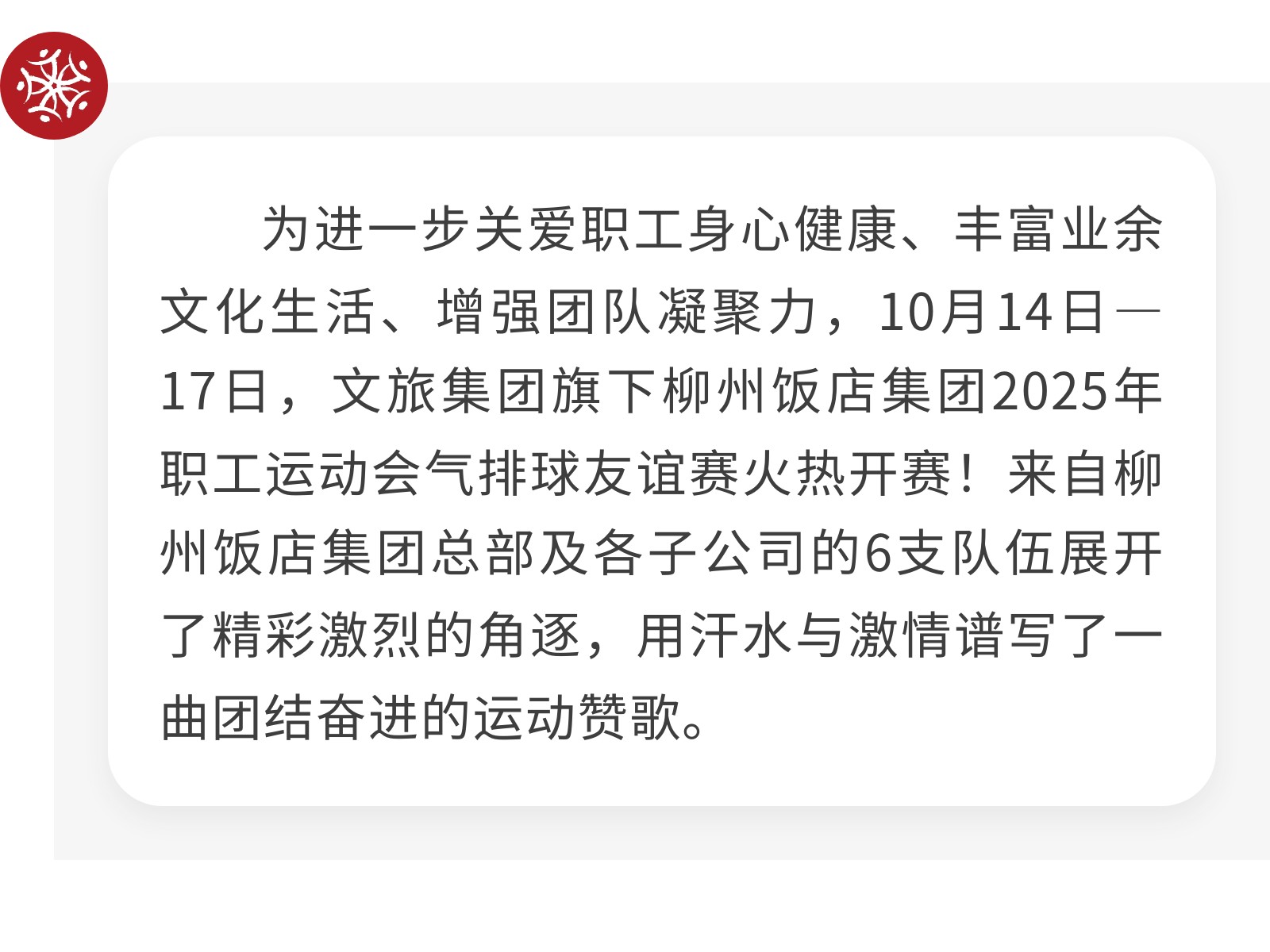 【引爆激情 “扣”動未來 】柳州飯店集團2025年職工氣排球賽燃情收官 發(fā)布時間:2025年10月22日 10時來源:本站原創(chuàng)瀏覽:35 人次