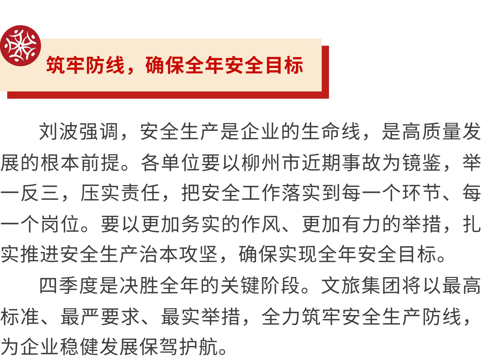 【壓實(shí)責(zé)任 筑牢防線】文旅集團(tuán)全面部署2025年第四季度安全生產(chǎn)工作 發(fā)布時(shí)間:2025年10月24日 10時(shí)來(lái)源:本站原創(chuàng)瀏覽:65 人次