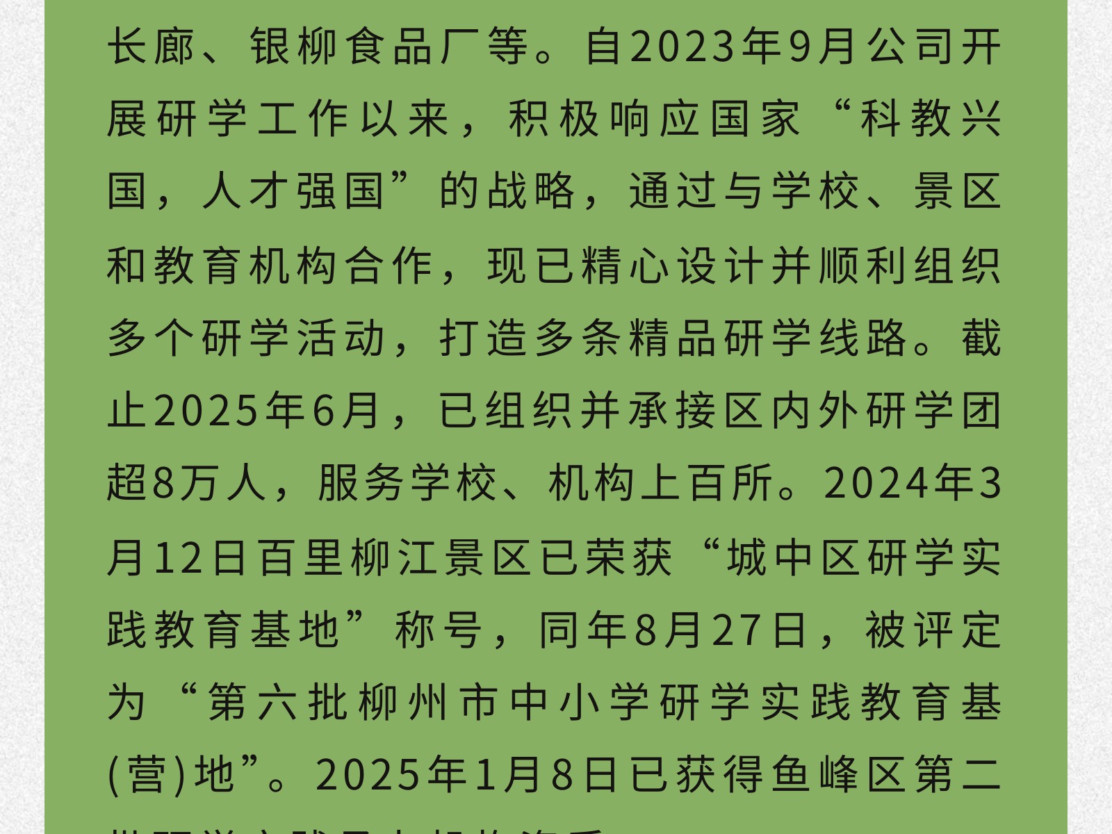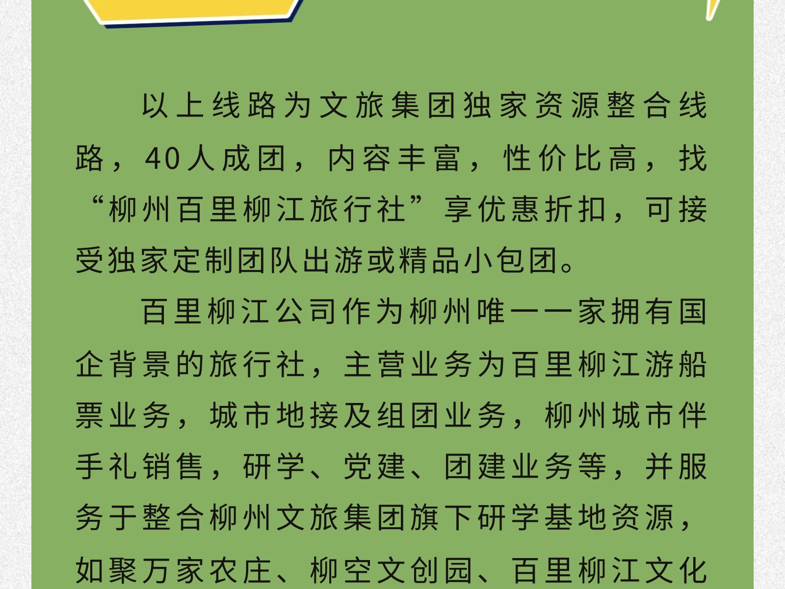 百里柳江旅行社專屬特色線路重磅發(fā)布!主題一日游獨(dú)家推薦! 發(fā)布時(shí)間:2025年11月01日 10時(shí)來(lái)源:本站原創(chuàng)瀏覽:73 人次