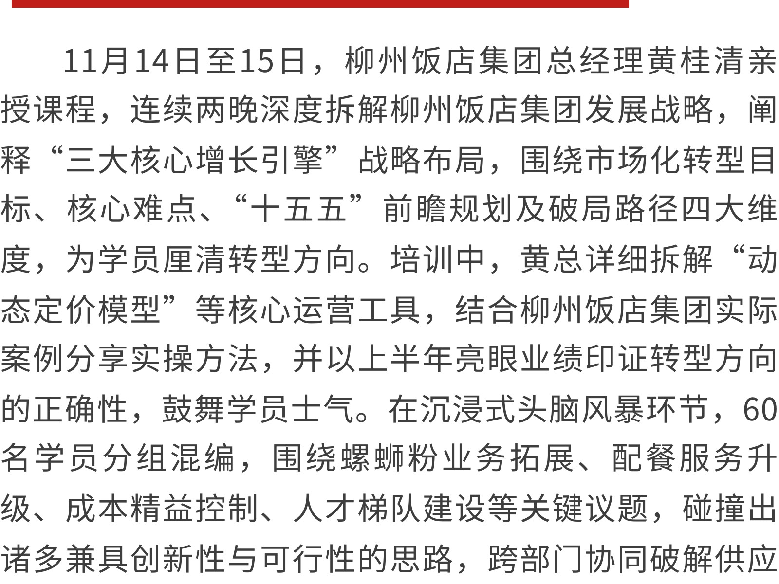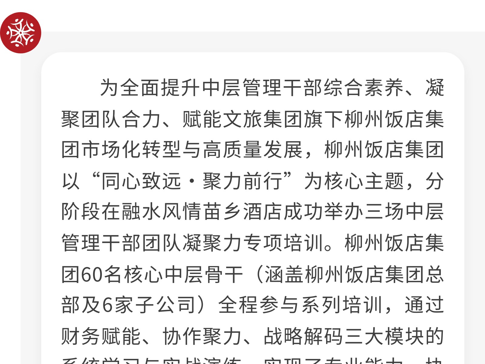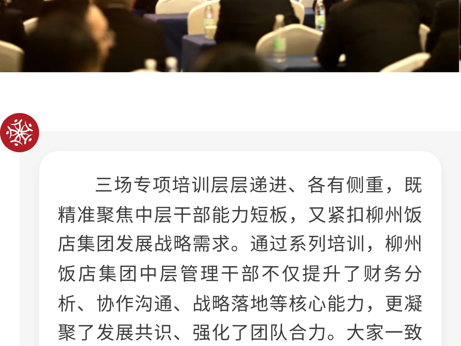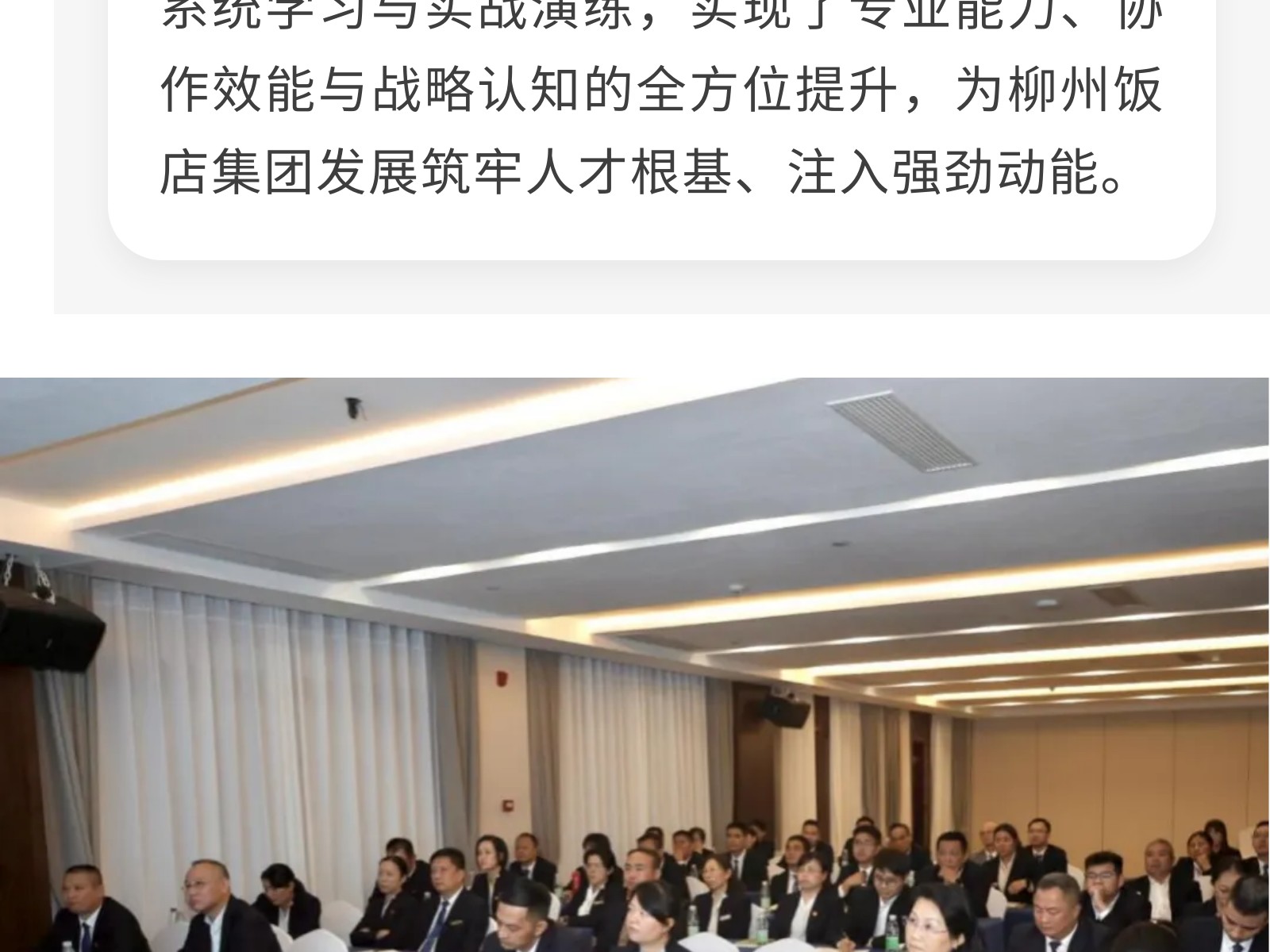 【同心致遠,聚力前行】柳州飯店集團中層管理干部團隊凝聚力系列專項培訓圓滿收官 發(fā)布時間:2025年12月01日 09時來源:本站原創(chuàng)瀏覽:8 人次